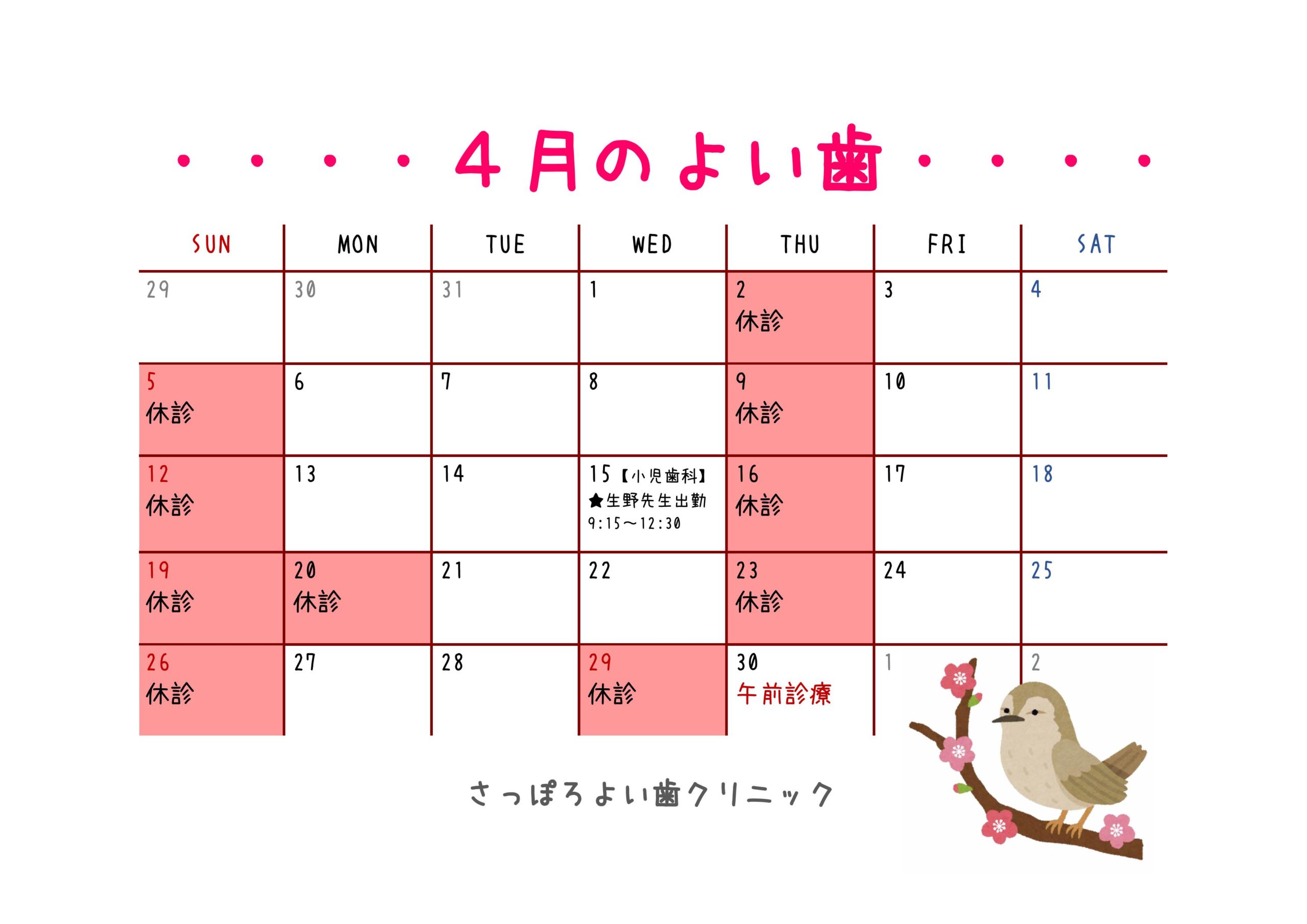 4月診療日のご案内